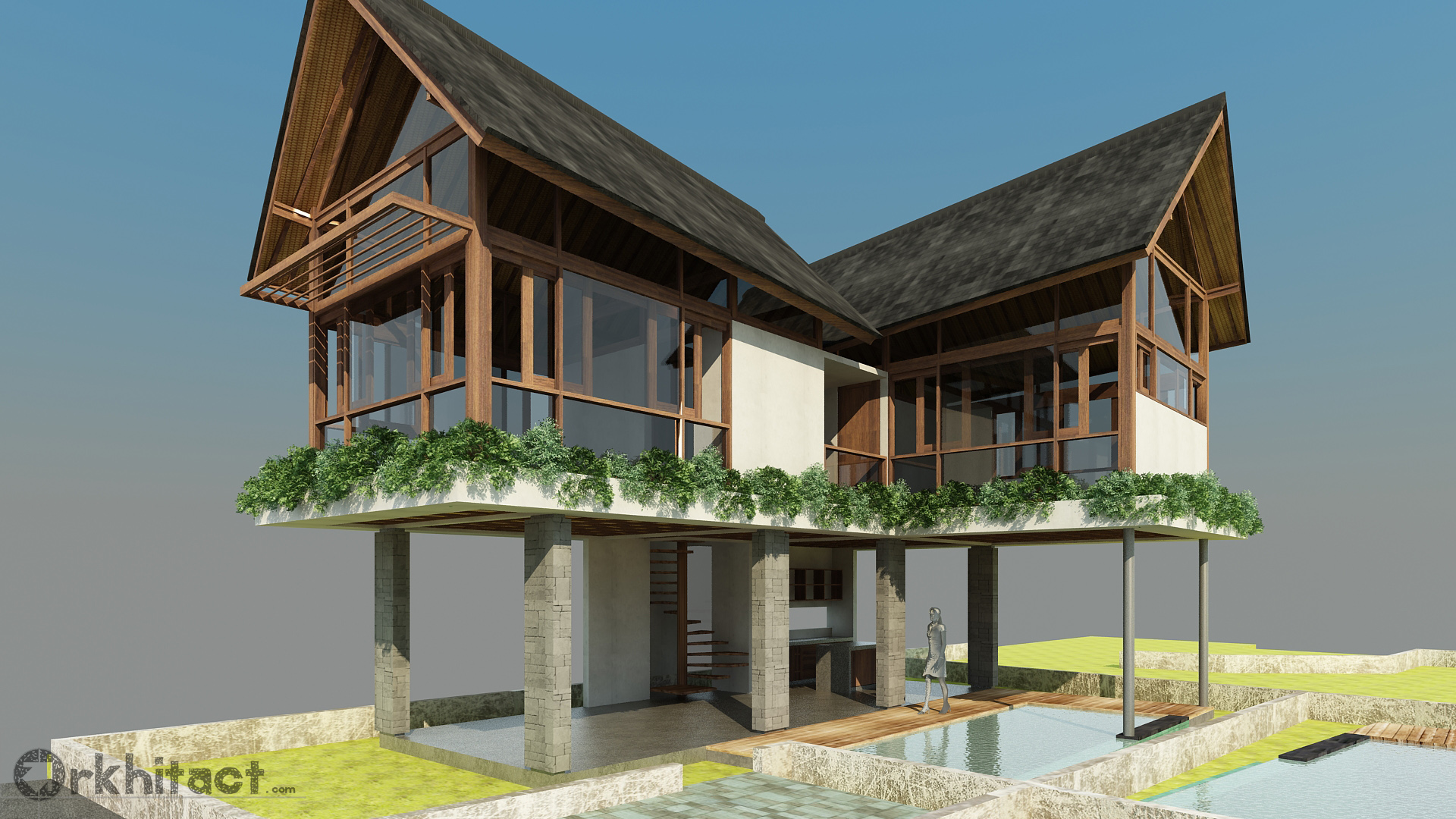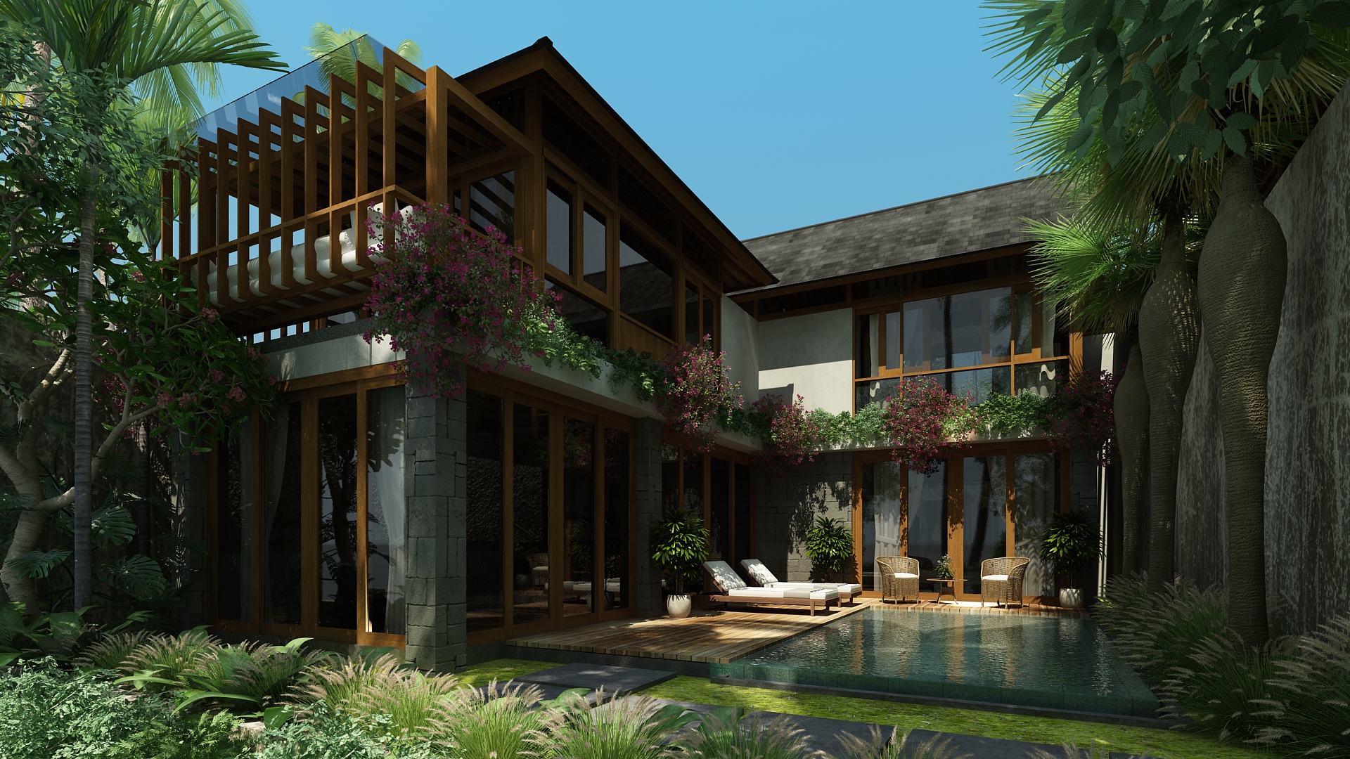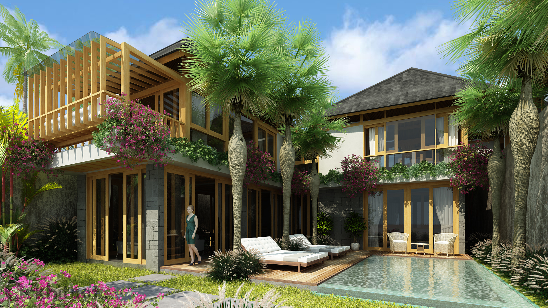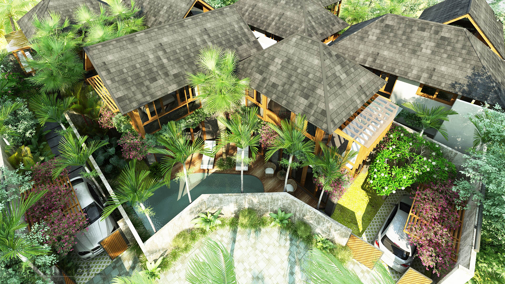 4 unit 2 bedroom villa complex in Berawa, the design combines the use of concrete/masonry and timber structures to give the feeling of lightness on a very compact space.