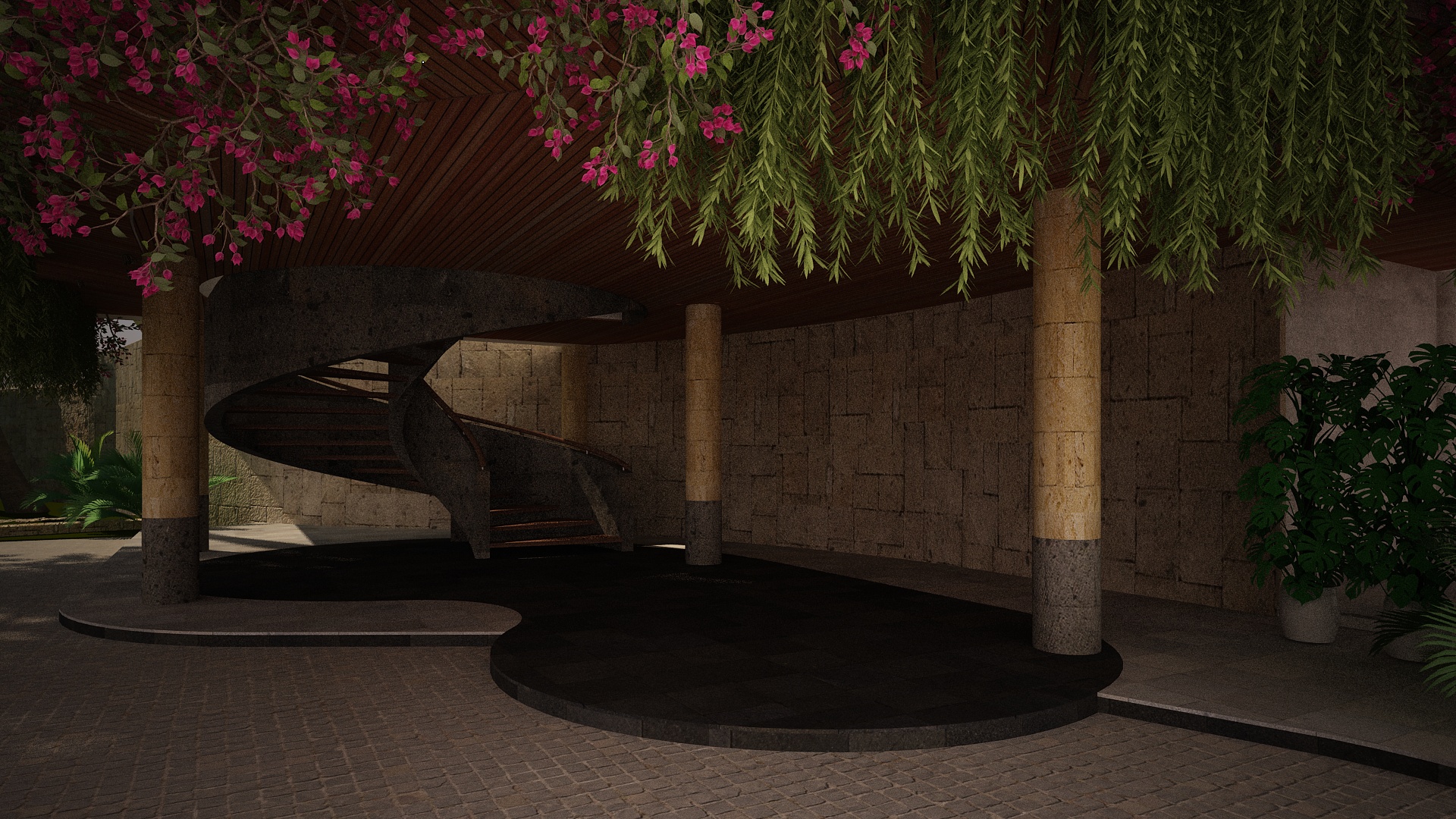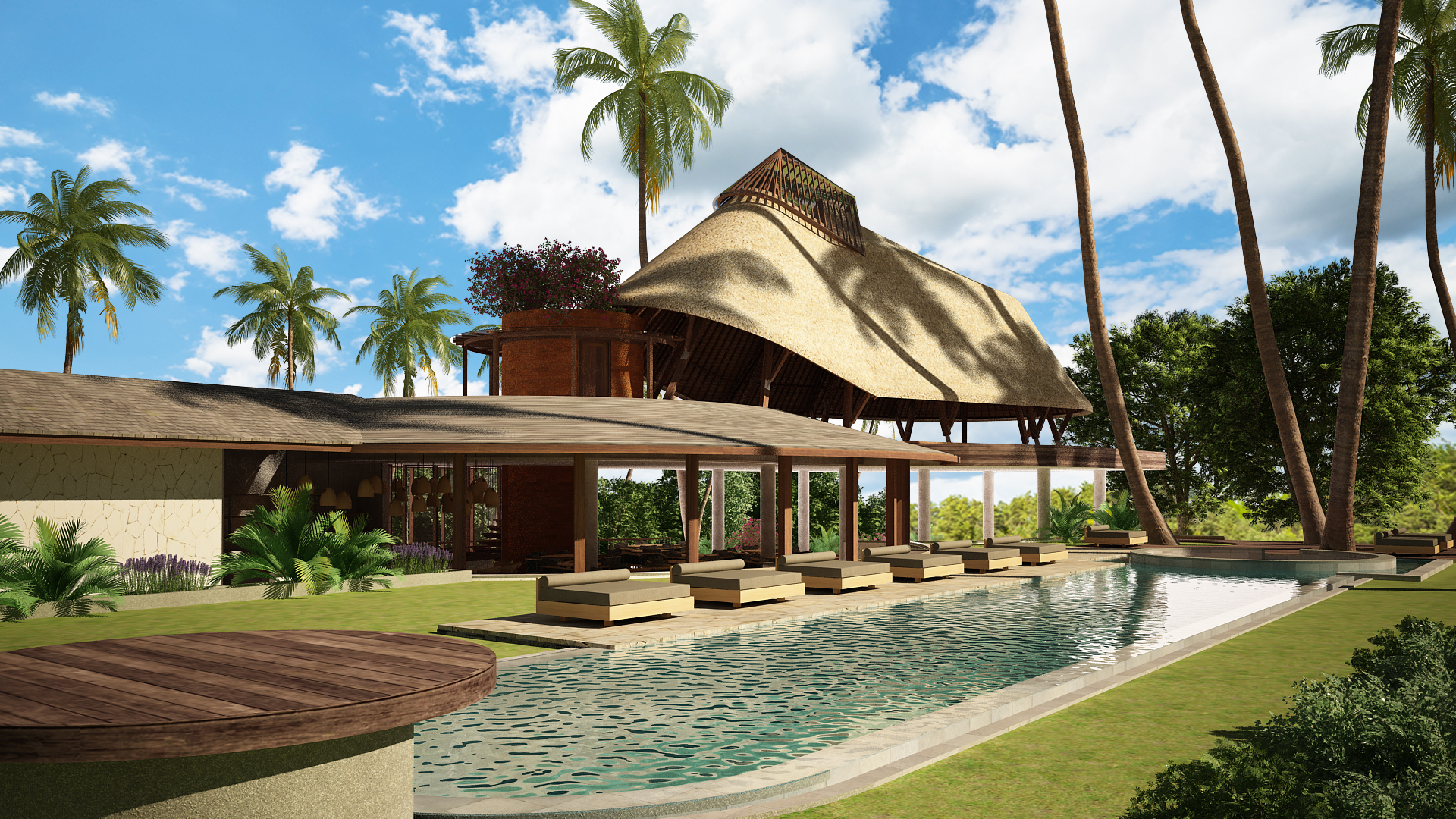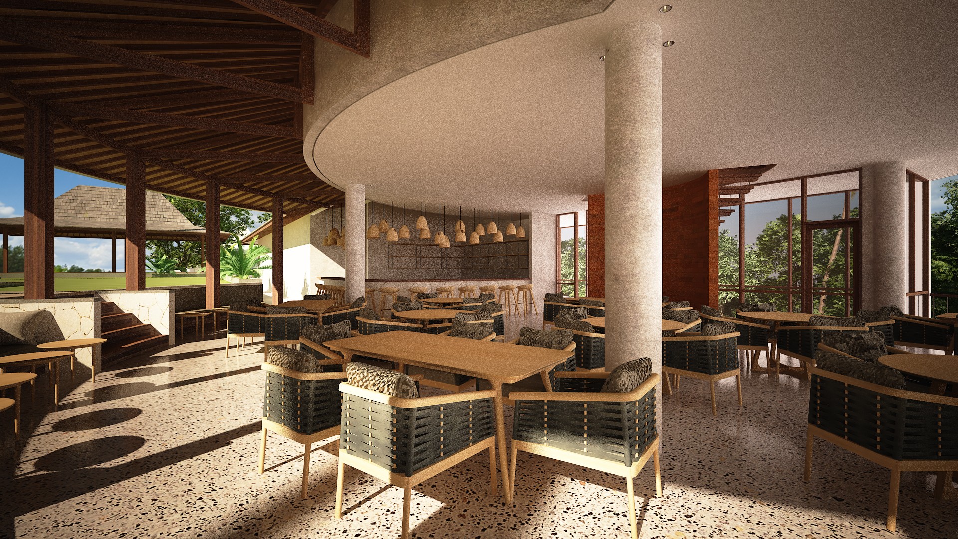 A design collaboration with Surya Kembar the resort, the design of the resort was mostly linear following its linear plot shape. Circles and curves was introduced to the main building design to give it a more organic feel as you move along from space to space. The Yoga shala which was placed on the very top was designed following the urdhva mukha svanasana pose shape in yoga and positioned on a surrounding pond to reflect the feeling of lightness.