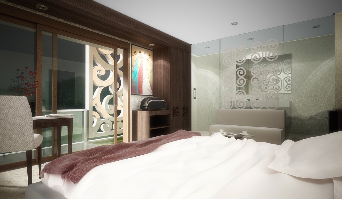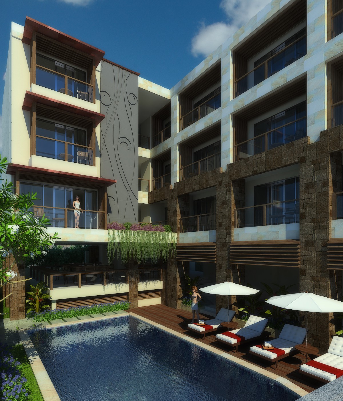 A four storey low rise city hotel, geometrical box in form, deep indentation were introduced to the openings on the facade to give a strong shade to accentuate the buildings form in combination with deep carved stone cloaddings.