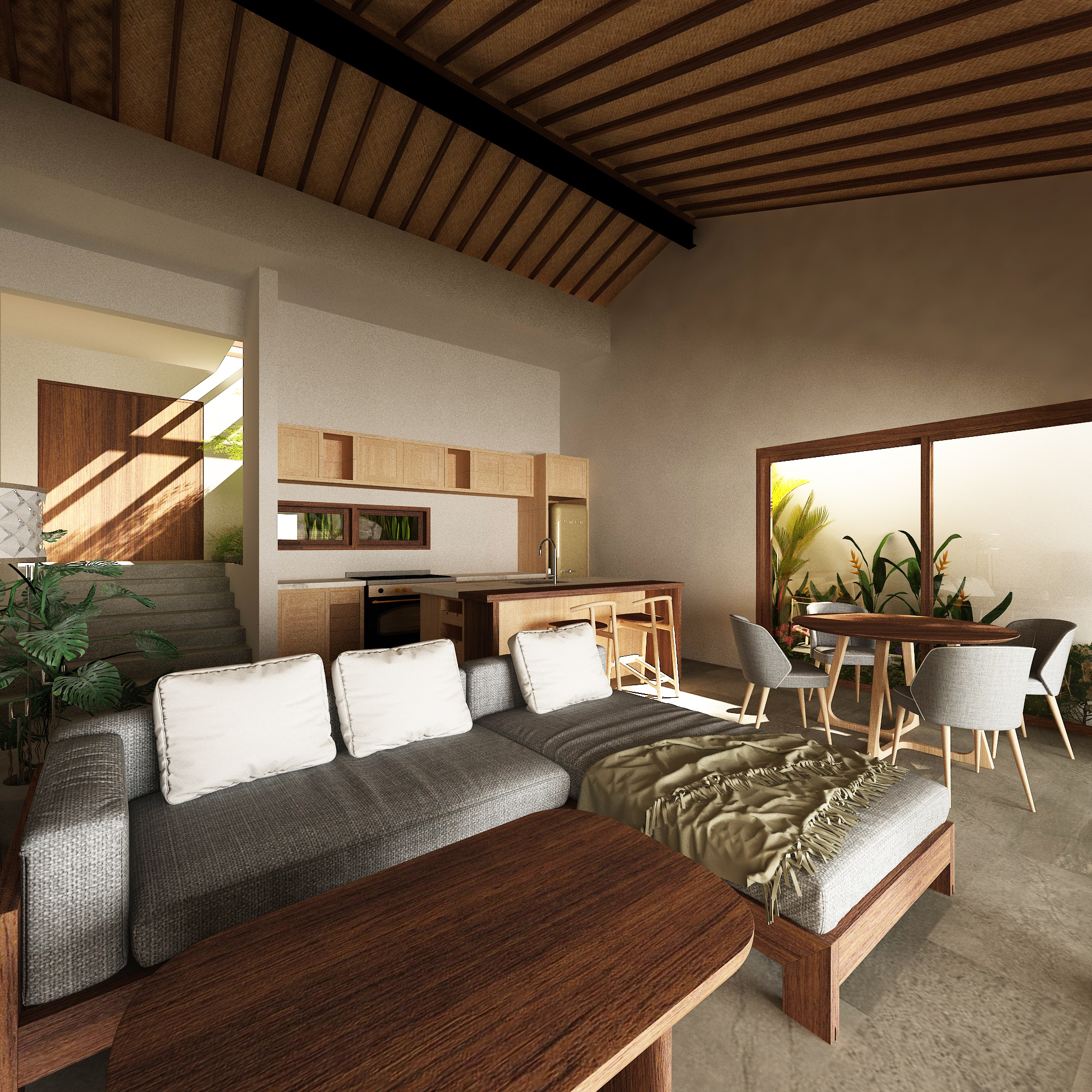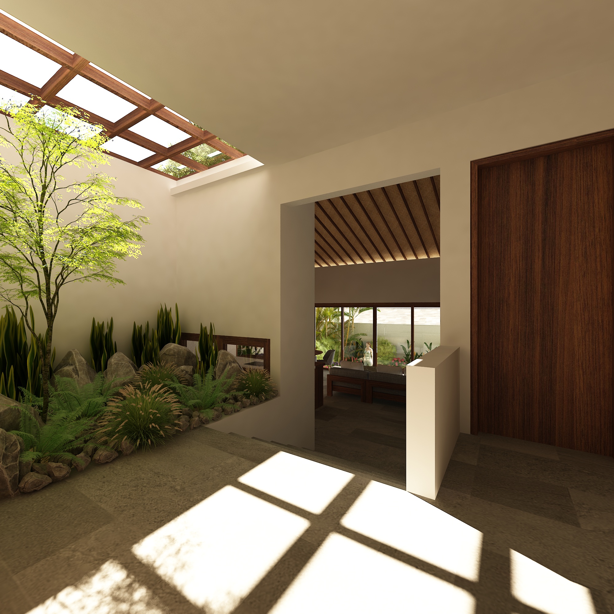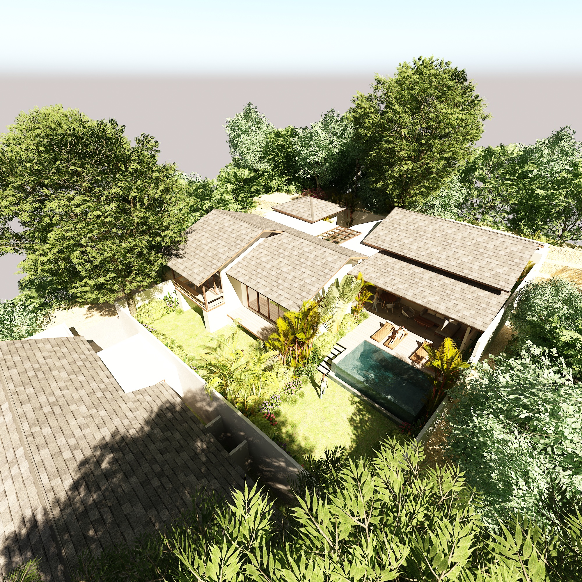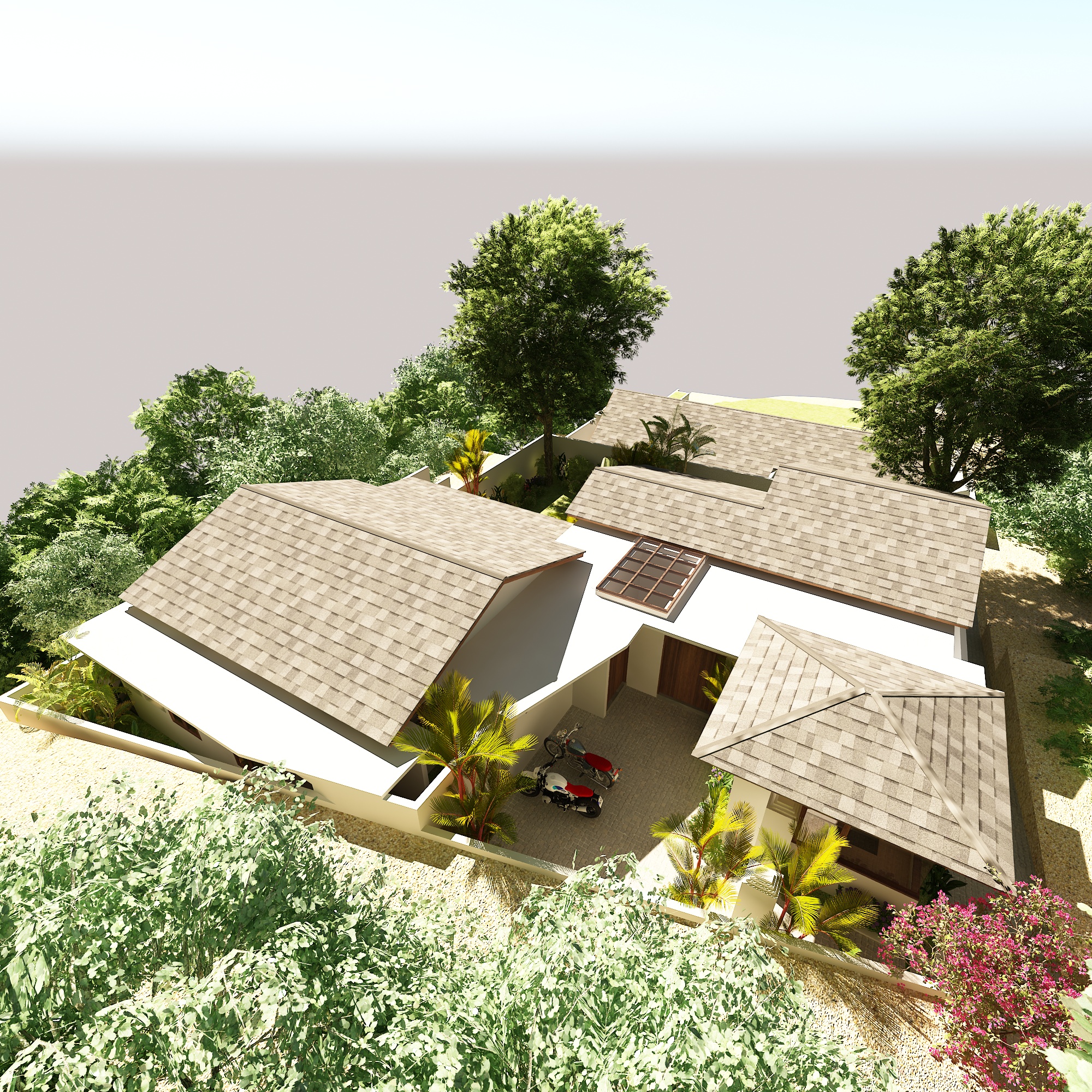 The plot was designed to accommodate 2 semi separate house, where one would be rented out and the other used by the owner. The house is designed structurally connected at one point due to the plot size, but privacy is still maintained between the 2. As the plot is on a slope the spaces/rooms are on split levels, this also allows the roof design to combine between flat and inclined shapes, thus creating interesting spaces inside the building. Use of lightweight materials are proposed as access to site is difficult, and cut and fill optimized to avoid bringing in landfills to the site.