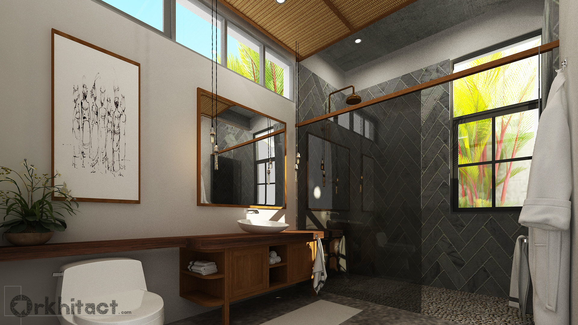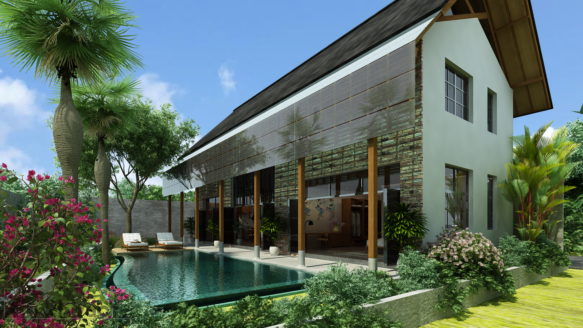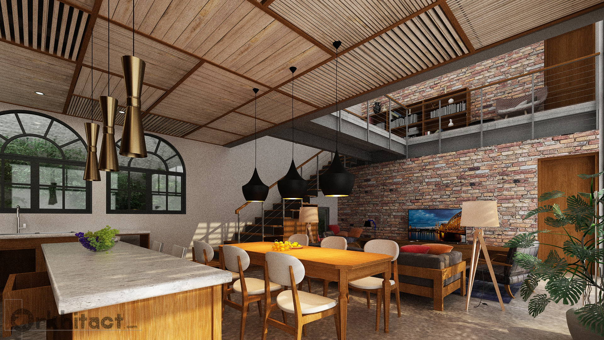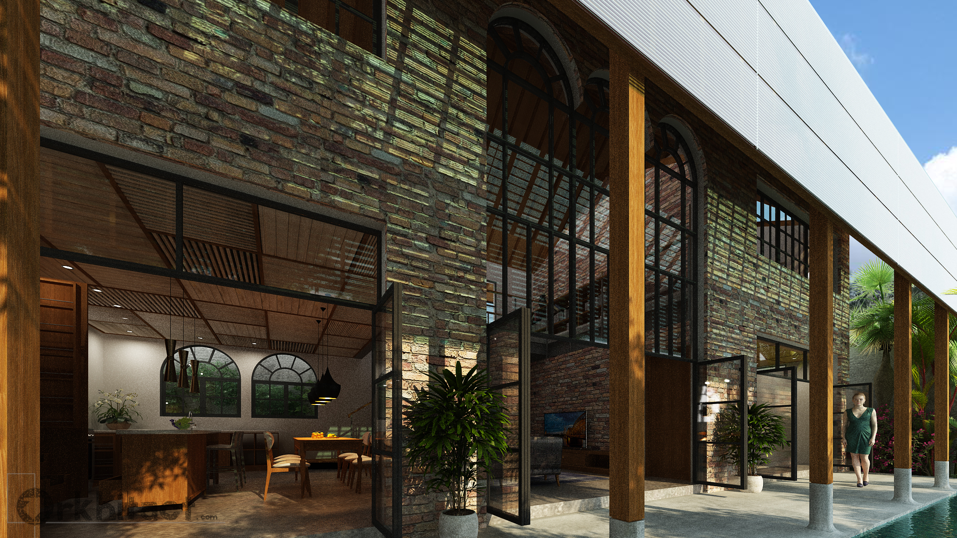 This 3 bedroom house was designed with an industrial style building concept, mainly using steel structures and exposed brick as material. An open living dining and kitchen area is connected in space through and internal void with the top floors. Each room has en-suite bathrooms and all space are open towards the pool area.