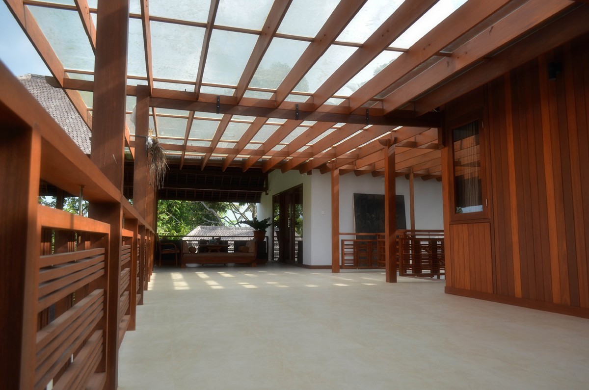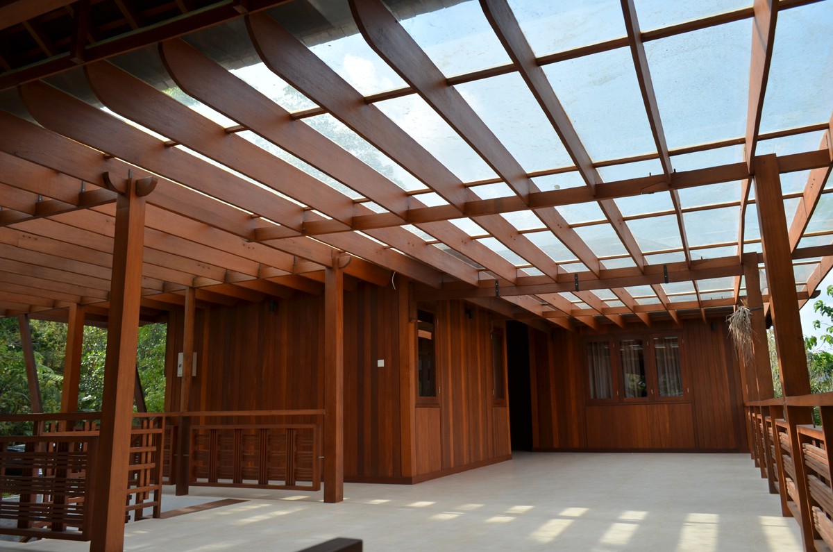 Designed based on existing structures, individual buildings are connected through a covered bridge that also functions as sitting areas and giving the building its massive look but without sacrificing the feeling of openess and comfort.