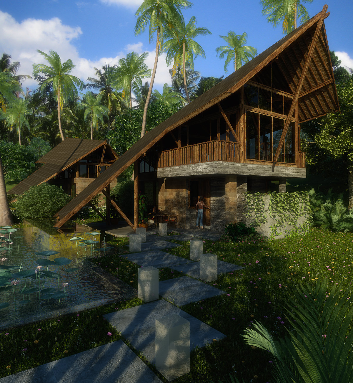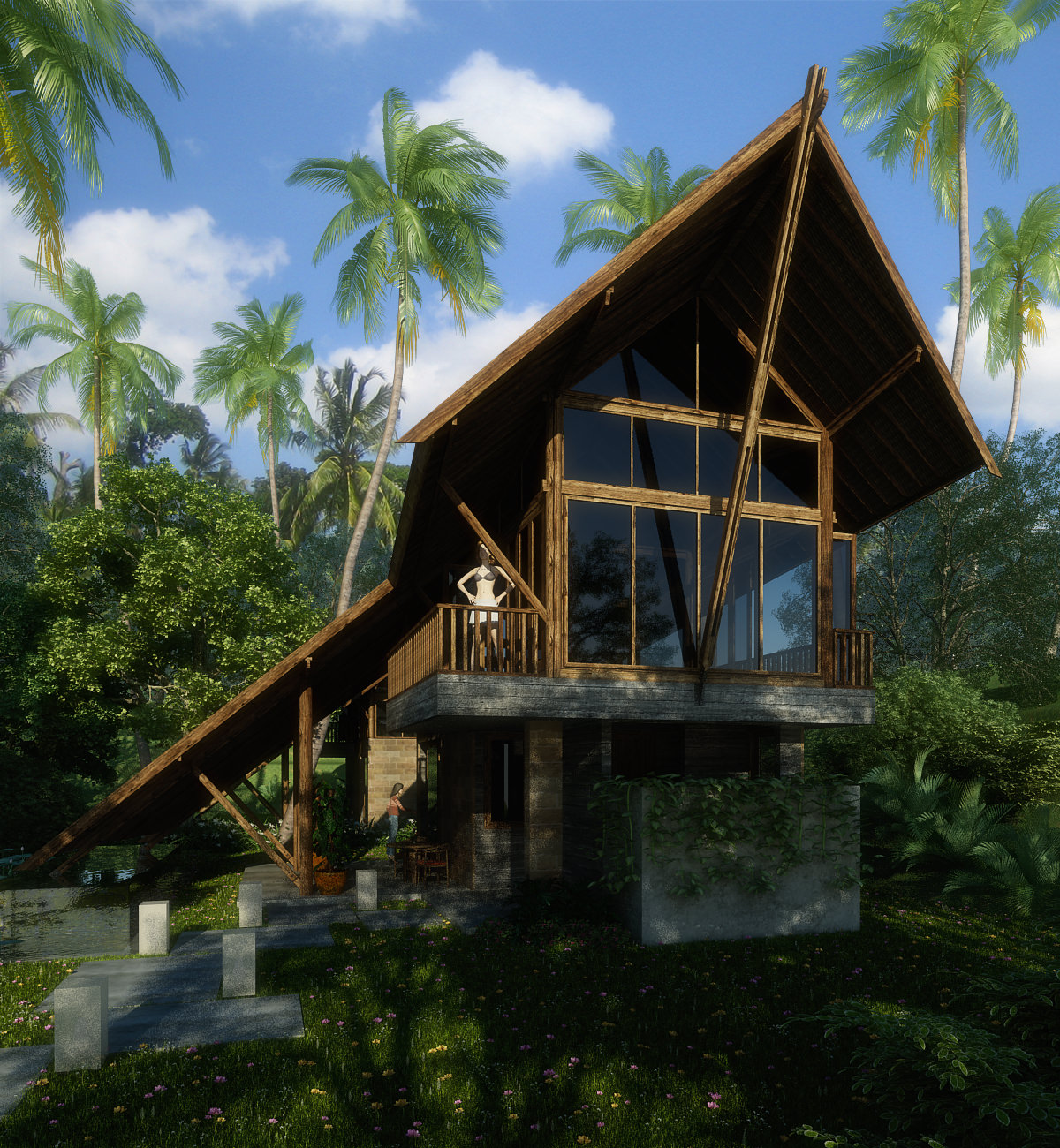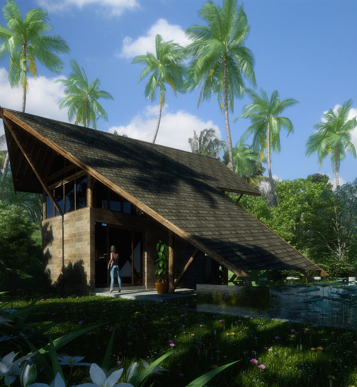 Another design coming out of an abandoned unfinished existing structure, this small villas assimetrical design was conceived to hide the structural flaws that came with the original abandoned structure.