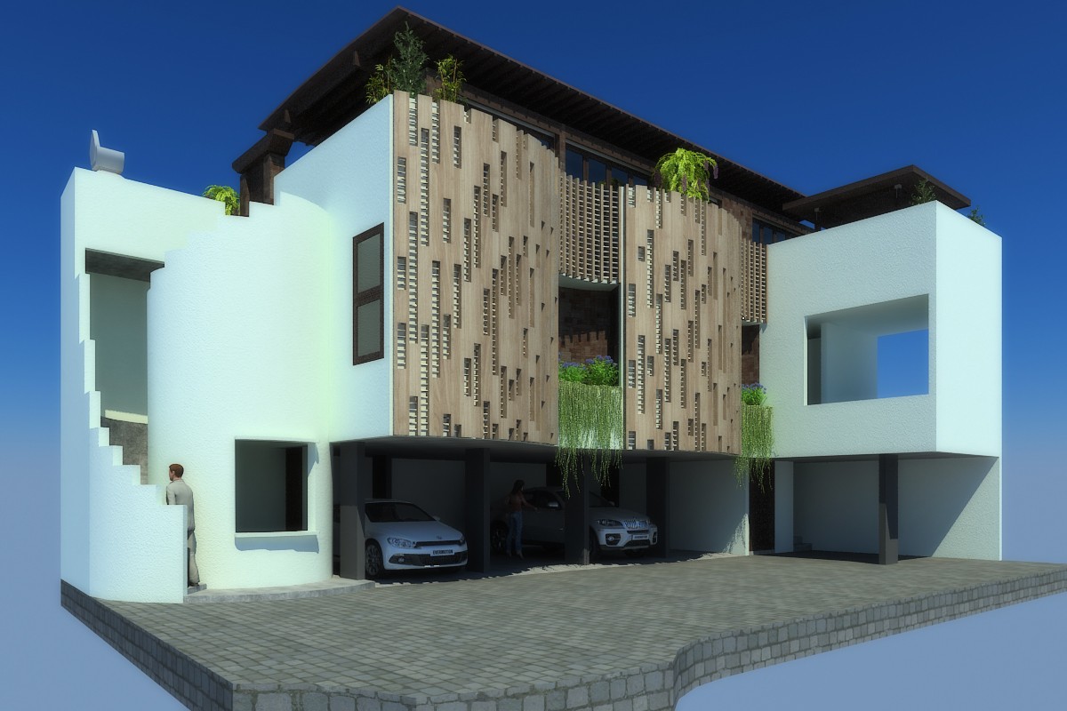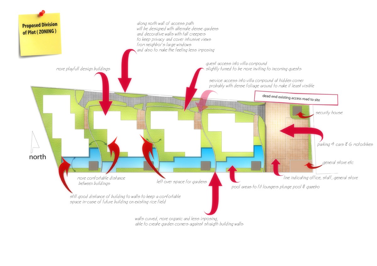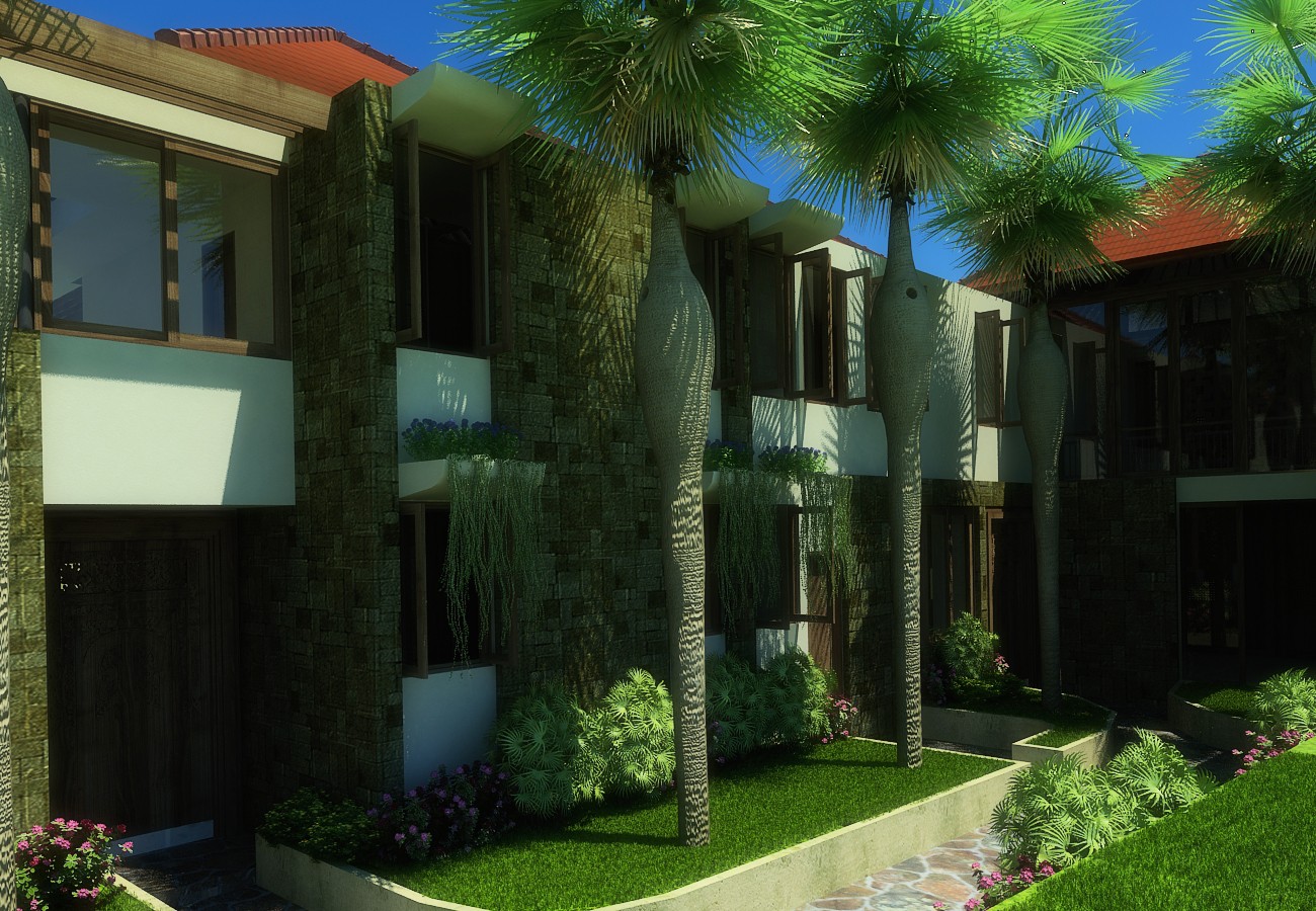 Three small villa unit with a rooftop house above the service building. Modern and tropical in design the two floor villa units was designed with the idea of bringing as much as possible natural light and breeze through the house.